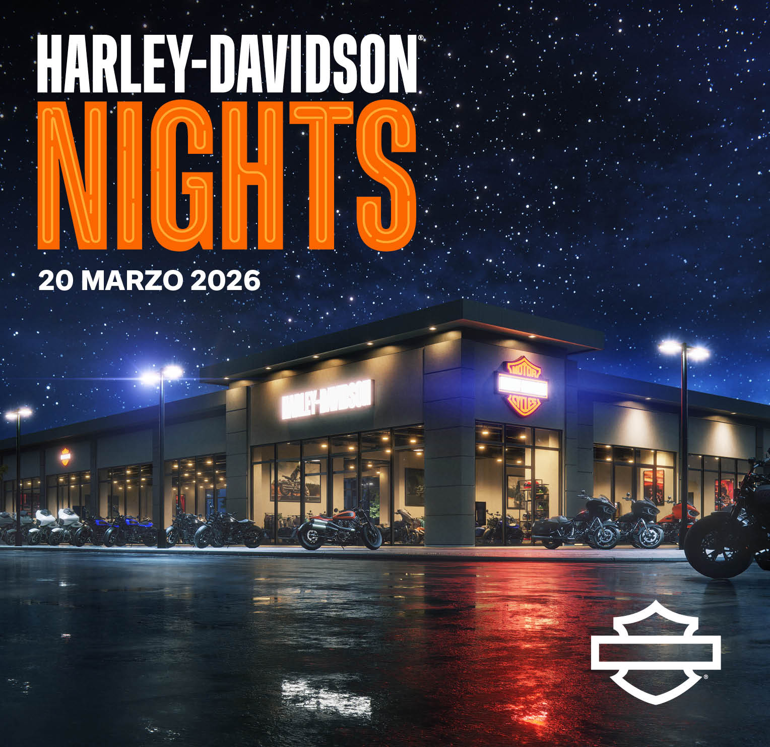 Segna la data in agenda: 20 marzo 2026. Ti aspettiamo per vivere insieme le Harley-Davidson Nights.