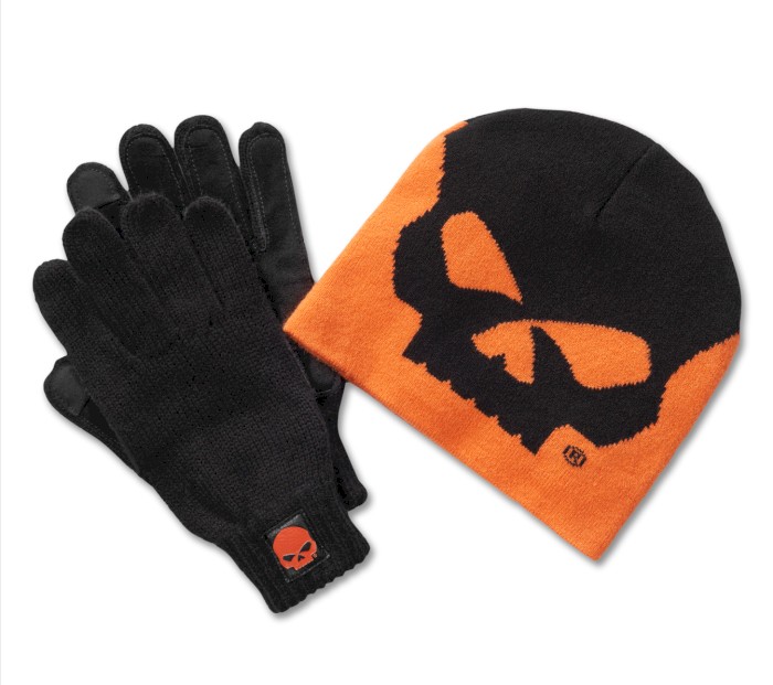 Esprimi il tuo stile con il set invernale Harley-Davidson Willie G Skull, composto da cappellino beanie e guanti coordinati. Un accessorio iconico che unisce comfort, funzionalità e il carattere inconfondibile della leggendaria grafica Willie G Skull.